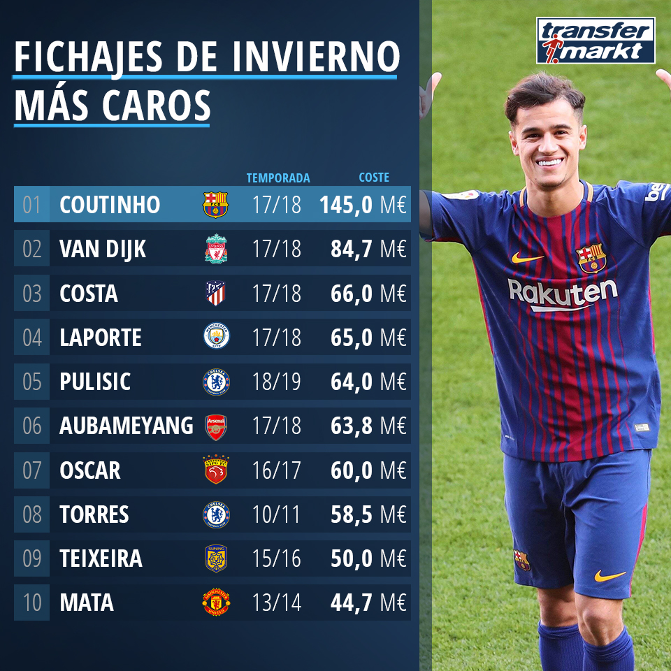 O Xrhsths Transfermarkt Es Sto Twitter Philippe Coutinho Es El Fichaje Invernal Mas Caro De La Historia Del Futbol Hace Dos Temporadas Llego Al Fcbarcelona Procedente Del Liverpool El Ranking Al Detalle Https T Co Crgmd6bd3f